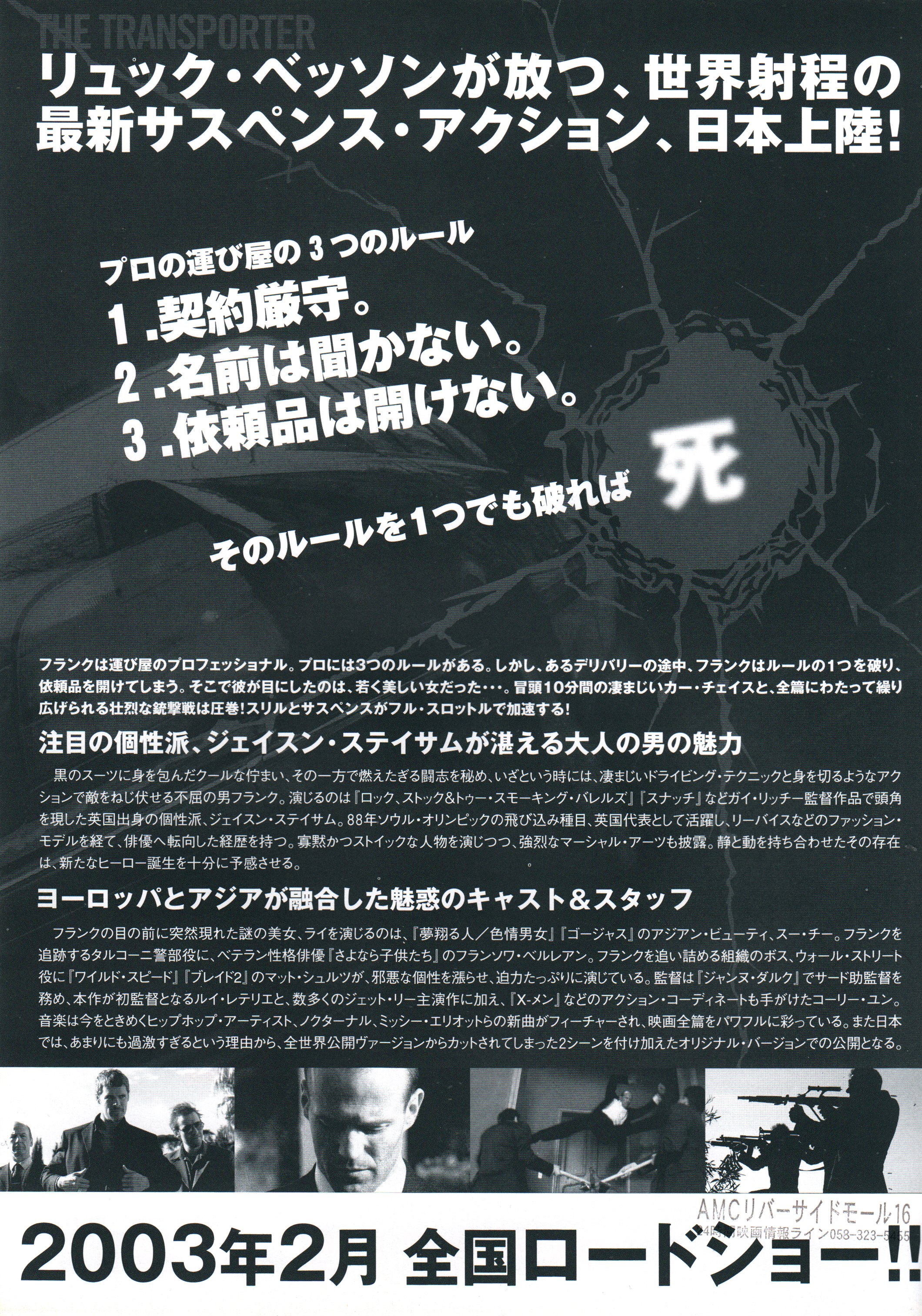 Kimmo Mäkinen kategoriassa Aulajulisteet 15.2.2025 27 Words The Transporter (2002) Japanilainen aulajuliste (chirashi). Koko on noin A4. Skannattuna julisteen molemmat puolet.A movie flyer (chirashi) from Japan. Size is about A4. Scanned both sides of the flyer. Tykkää Lataa... Aiheeseen liittyy