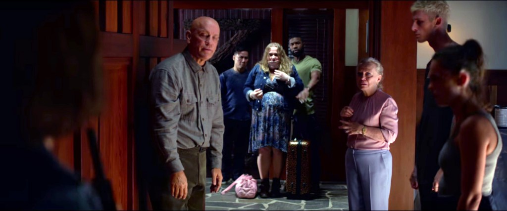 Vaikka yhtymäkohtia elokuvaan on helppo löytää takavuosien kammotuksesta, M.Night Shyamalanin elokuvasta The Happening (2008) ja aiemmin samana vuonna ilmestyneestä John Krasinskin taidokkaasta kauhujännäristä A Quiet Place (2018)[x], Susanne Bierin ohjaustyöstä voi myös pienellä kuorinnalla löytää kovasti tallattuja stereotypioita, harmillisia ammottavia aukkoja elokuvan juonikyhäelmästä ja kiusallisen tuttuja jälkiapokalyptisten elokuvien kuvioita. Vai mitä sanotte siitä, että elokuvan taloon linnoittautuneesta selviytyjien joukosta löytyvät vakioidut, sukupuolellisesti ja rotupiirteisesti poliittisesti korrektit heikkoitsetuntoinen valkoinen lihava nainen, hieman pulskahtava mustaihoinen hauskuuttaja, epämiellyttävä ja karkea vanhempi valkoinen heteroseksuaalimies, ymmärtäväinen homomies, päätähteä suojeleva ja itsensä uhraava komea ja totinen mustaihoinen mies sekä itsekäs vain seksiä ajatteleva nuorukainen. Jännityselementtejä Susanne Bier saa aikaiseksi etupäässä siitä, arvaako katsoja mitenkä nopeasti oikein pahvihahmojen teloitusjärjestyksen ja kuka onkaan se vääjäämätön petturi, oudot äkkimuutokset hahmojen käytöksessä sekä hahmojen odotetut reaktiot ryhmän kohtaamiin haasteisiin. Yhdellekään teurastettavista hahmoista ei anneta muuta tahi kiinnostavaa käyttöä semminkin, kun elokuvan tekijät eivät halua näiden hahmojen kuolemien tai historian kautta edes avata maailmanlopun taustoja. Teloitettavan vakioväen voisi vaihtaa päittäin melkeinpä vaikka jonkin kasarislasherin vastaavan väen kanssa eikä kukaan huomaisi yhtikäs mitään.